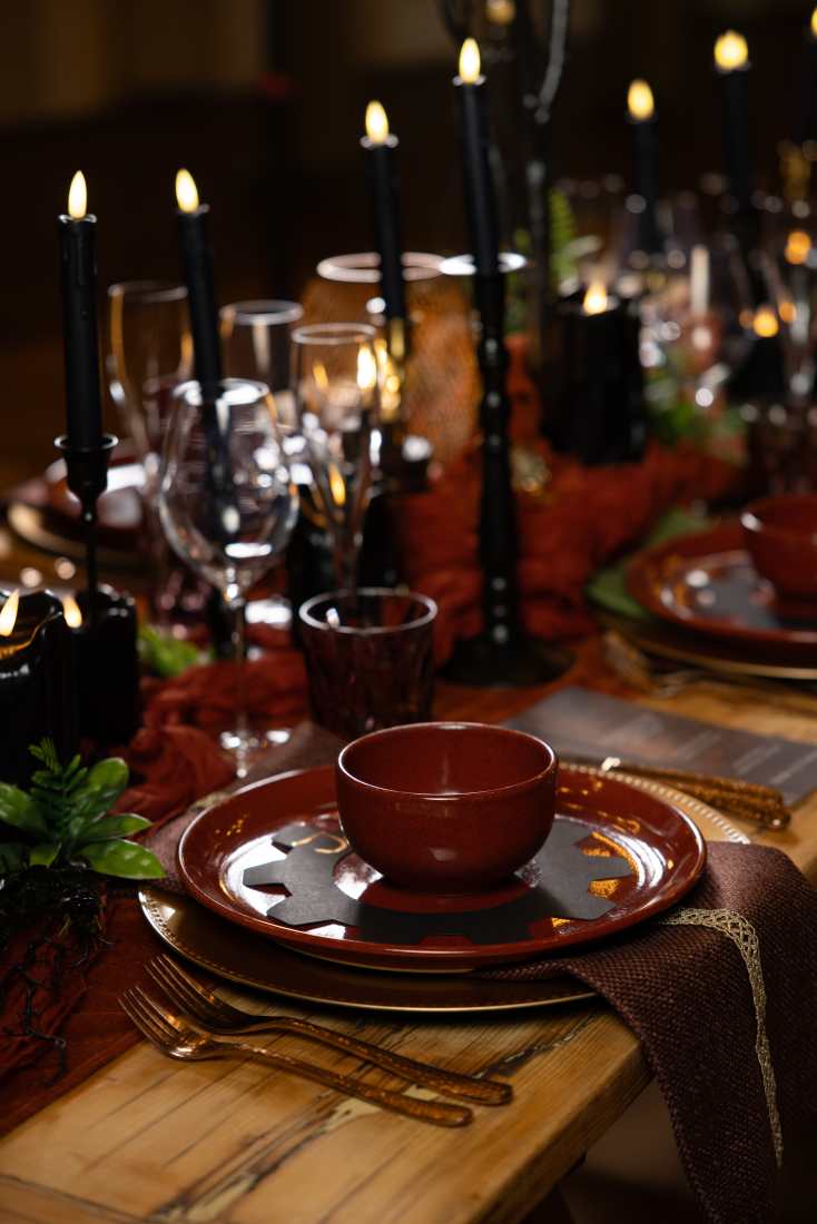Rent unique, rustic chargers and crockery with intricate detailing to create a rich, vintage vibe. Copper or brass utensils, along with rich-coloured glassware, will add even more Steampunk flair to your tables. Combining these elements creates an eclectic, yet cohesive, aesthetic that speaks to the heart of the Steampunk style.